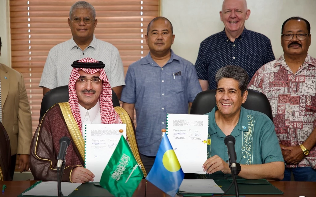 مباشر بنوك السعودية: وقّع الرئيس التنفيذي للصندوق السعودي للتنمية، سلطان المرشد، مع رئيس جمهورية بالاو، سورانجل ويبس جونيور؛ اتفاقية أول قرض تنموي مقدم من الصندوق لجمهورية بالاو بقيمة 15 مليون دولار.